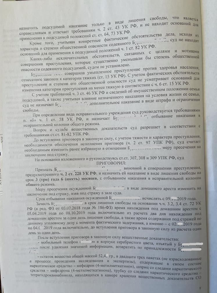 В результате эффективной работы более полугода удалось добиться приговора: по статье 228 ч.2 УК РФ